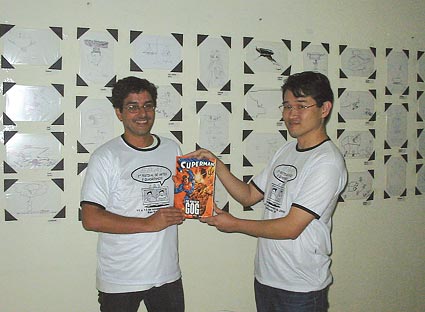 Finalizando o encontro, o cartunista autografou diversos exemplares do BiraZine, a revista feita especialmente para o evento na Coréia. |