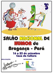 Haverá premiação no valor de R$ 500,00 para o vencedor de cada categoria do concurso: Charge, Cartum e Caricatura, sendo que cada artista pode inscrever até 3 trabalhos inéditos (com tema livre) em cada categoria. Os trabalhos originais (não serão aceitas fotocópias ou reproduções digitais) devem ser enviados para 3º Salão Nacional de Humor de Bragança - Pará (Travessa Senador José Pinheiro, s/nº - CEP 68600-000 - Bragança-PA), realizados sobre papel ou cartolina, no formato 30 x 40 cm, sem nenhuma espécie de moldura e contendo no seu verso categoria, nome completo, endereço, CPF, RG, dados bancários e e-mail. Obras coladas ou feitas em cartão, placas de madeira ou similares não poderão concorrer. Maiores informações pelo e-mail lucianomeskyta@gmail.com. |