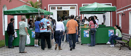 Mônica, Cebolinha, Cascão, Magali e toda a turma criada por Mauricio de Sousa encanta crianças de todas as idades há décadas. E alguns fãs, movidos pela admiração aos gibis da turminha, resolveram promover um evento nos moldes dos que são feitos por fãs de HQs ou de Mangás. O 1º Monicontro (divulgado aqui) aconteceu dia 24 de maio, no Solar do Barão, em Curitiba, das 14h às 19h. Na sala Scabi aconteceu a abertura do evento e logo em seguida iniciou-se a palestra com Marcos Vaz, criador de vários personagens institucionais, tais como Umuaraminha, Curitibinha, Paranazinho e Brasilzinho. Vez contou um pouco sobre seu trabalho e como a Turma da Mônica influenciou sua carreira como desenhista. Já a segunda palestra foi com o desenhista Alberto Bennet, que publica tiras na Gazeta do Povo, jornal de maior circulação do Paraná. Bennet relatou sobre como é ser um caricaturista político.